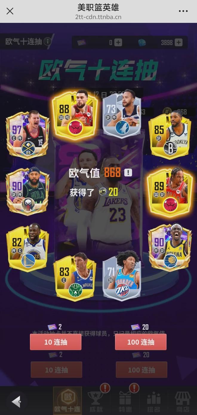 扫码进入游戏-活动-即可参与欧气十连抽赢铂金卡自选!