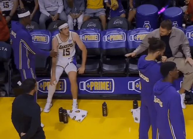 今天比赛,首发阵容方面,勇士队这边,科尔排出的首发五人组为:布兰丁--波杰姆斯基、巴迪-希尔德、乔纳森-库明加、德雷蒙德-格林、昆滕-波斯特;湖人队这边,首发阵容则为:奥斯汀-里夫斯、多尔顿-克内克特、八村垒、贾里德-范德比尔特、德安德烈-艾顿。